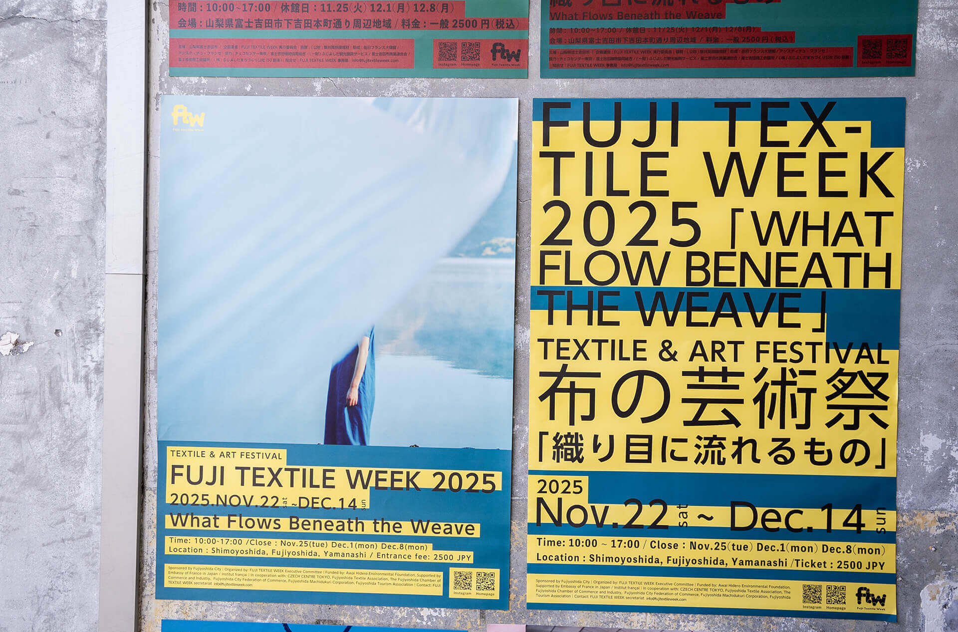 FUJI TEXTILE WEEK launched in 2021 as Japan’s only textile-based arts festival, blending traditional industry with artistic expression. Rooted in the thousand-year history of Fujiyoshida, Yamanashi, the festival aims to revitalize the local community and its traditional crafts. By placing textiles in the spotlight, the event explores and discovers new possibilities for the medium through the lens of art and design.