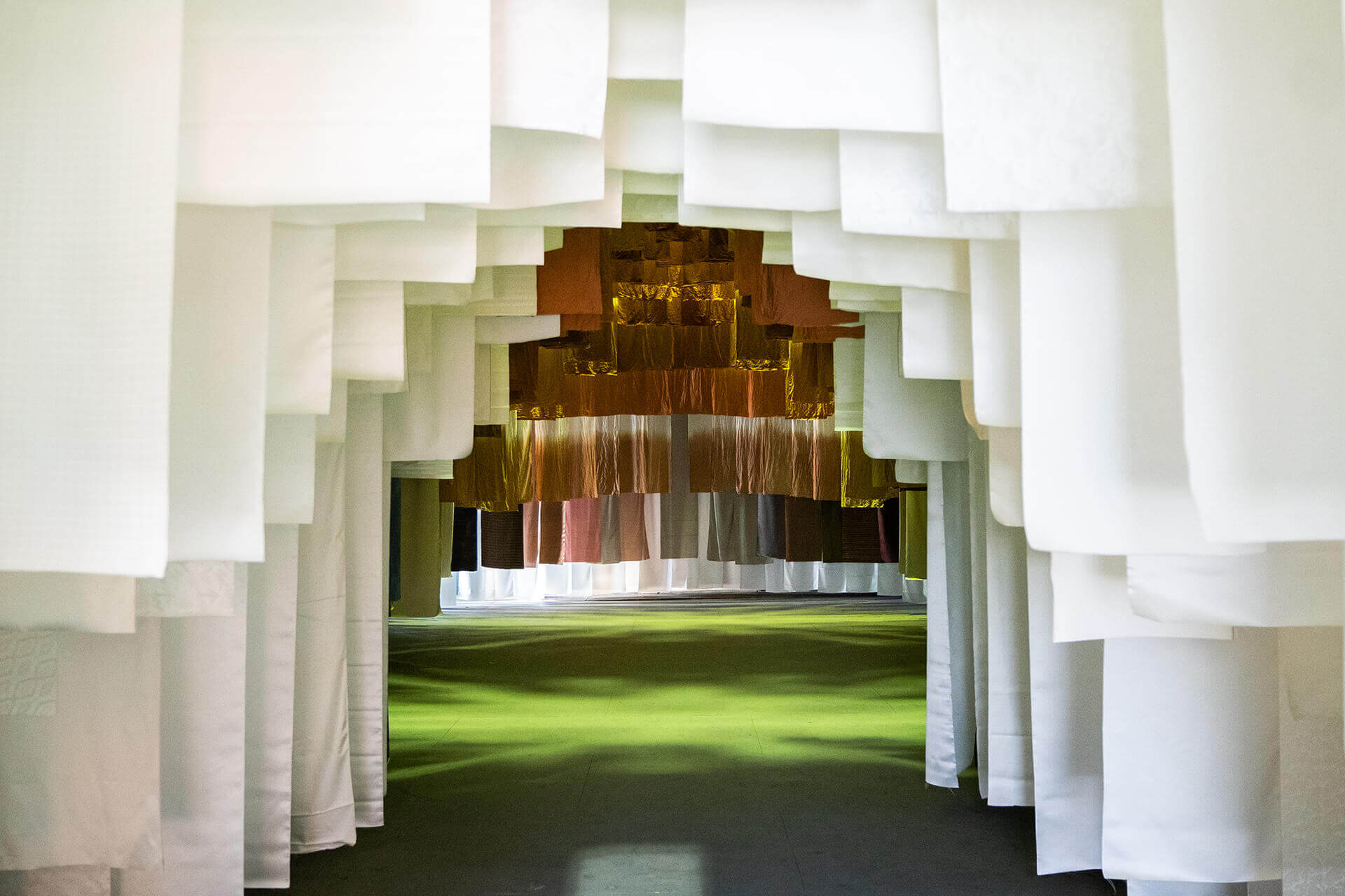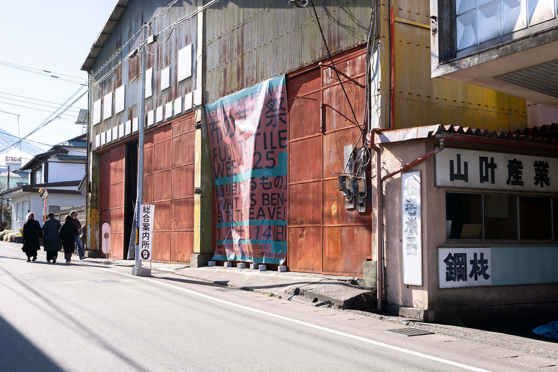 FUJI TEXTILE WEEK is a festival of textiles and art set in Fujiyoshida City, Yamanashi Prefecture, Japan. Built upon a thousand-year history as a textile production hub, the festival repurposes abandoned factories, warehouses, shops, and residences as exhibition venues. Through collaborations between international artists and local makers, it creates new forms of expression and relationships.