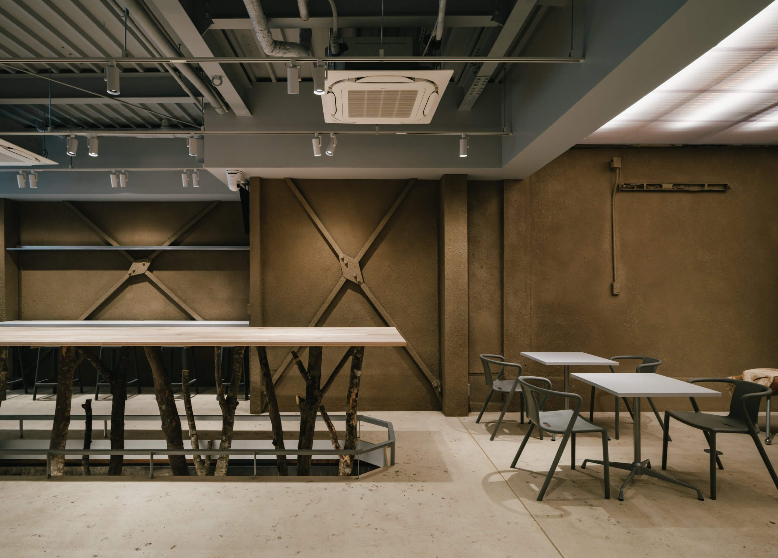 FabCafe Osakaの壁面には、大阪の淀川から採取された浄水発生土を使用しています。この素材は、浄水場の水処理過程で発生する上水汚泥を脱水・乾燥させたもので、都市の記憶を宿した独特な質感を持つ壁を生み出しています。