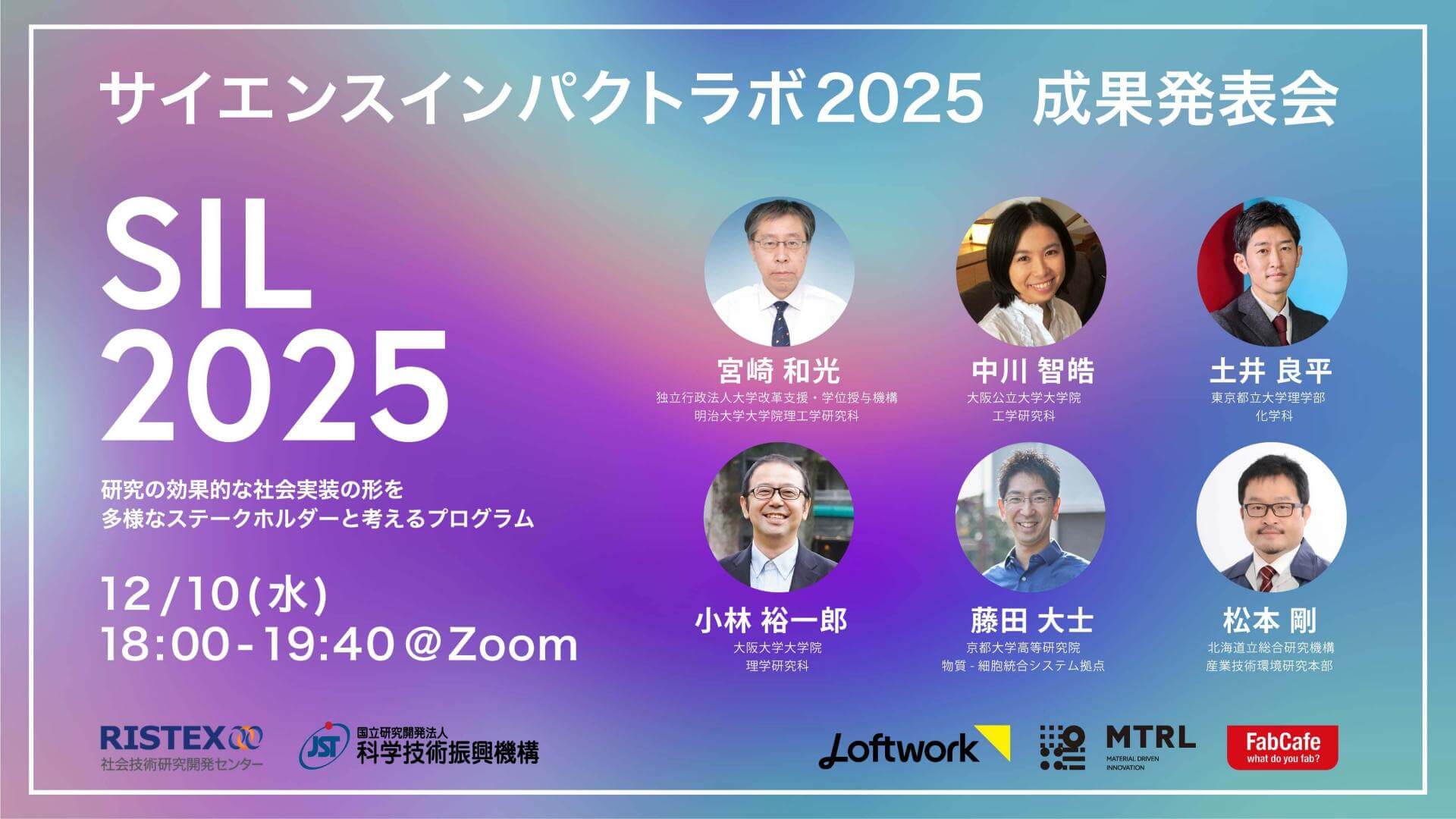 MTRL(運営:株式会社ロフトワーク)は、国立研究開発法人科学技術振興機構(JST)の社会技術研究開発センター(RISTEX)が行う共創プログラム、2025年度のサイエンスインパクトラボ(以下、SIL2025)を運営しています。