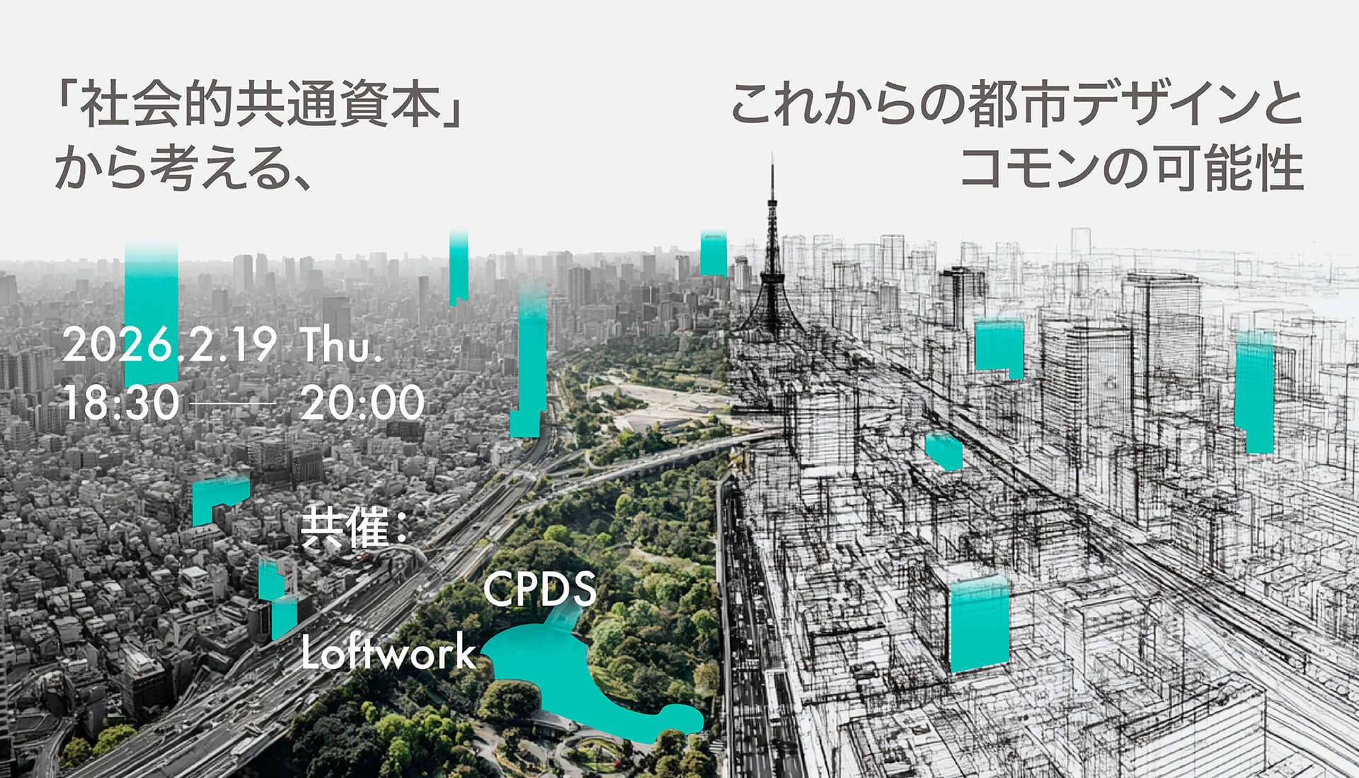 資本主義と民主主義の原点を「公共=Common(利他共生)」に置き、建設プロジェクトの未来を構想する一般社団法人建設プロジェクト運営方式協議会(CPDS)と、クリエイティブカンパニー株式会社ロフトワーク共催でトークイベントを開催します。