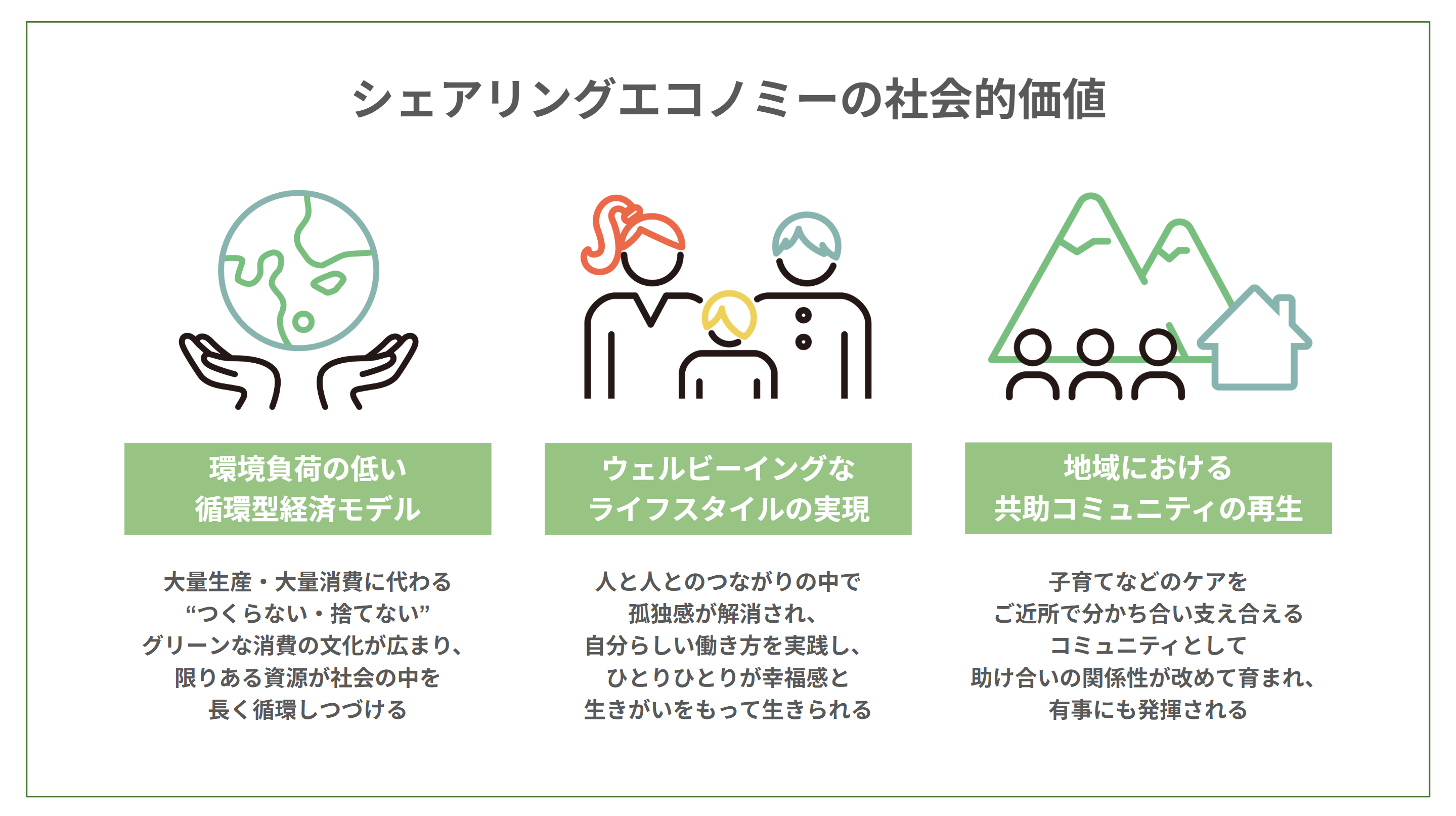 シェアリングエコノミーは、国内市場規模が約3兆円を超え2032年には約15兆円に達すると予測されるなど、社会に欠かせないインフラへと急成長しています。一方で、その最大の価値である「人と人とのつながりがもたらすウェルビーイング」や「地域コミュニティの再生」「環境負荷の低減」といった定性的な価値は、GDPや売上高といった従来の経済指標では正当に評価されていません。