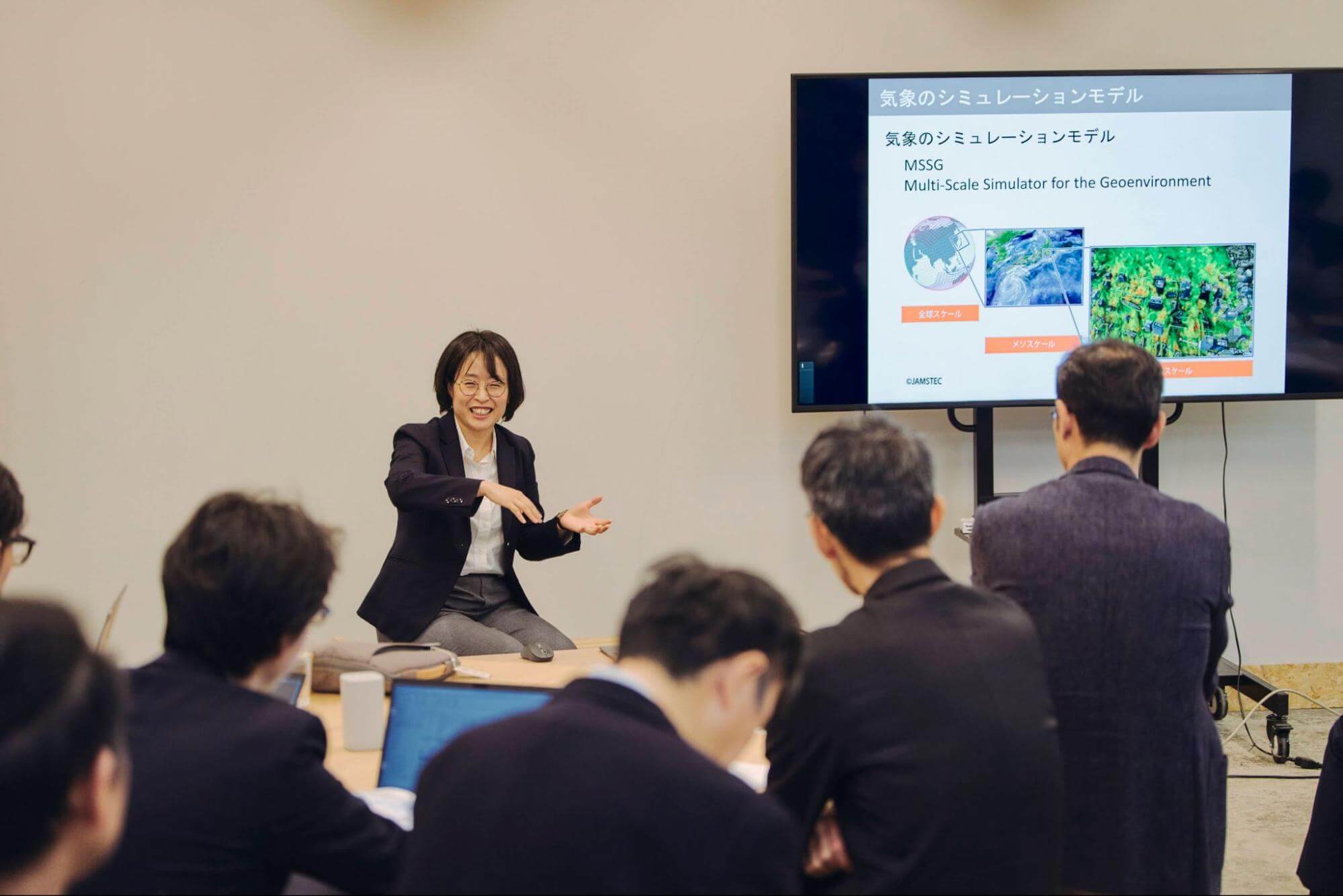 気象モデルについては、その限界性や課題にも触れながら、未来の土地利用プランや樹木配置をもとに風や熱の分布を再現できると伝えました。今後は、住民・事業者・行政と、まずは街のコンセプトや作りたい環境を考え、それに沿って「どこに風を通すか」「どの樹木をどれだけどこに植えるか」などのパターンを考え、現状の気候把握→土地利用改善案の修正と提案→未来の気候再現を重ねて、森之宮らしい“涼しさのデザイン”を作っていきたい、と話ました。