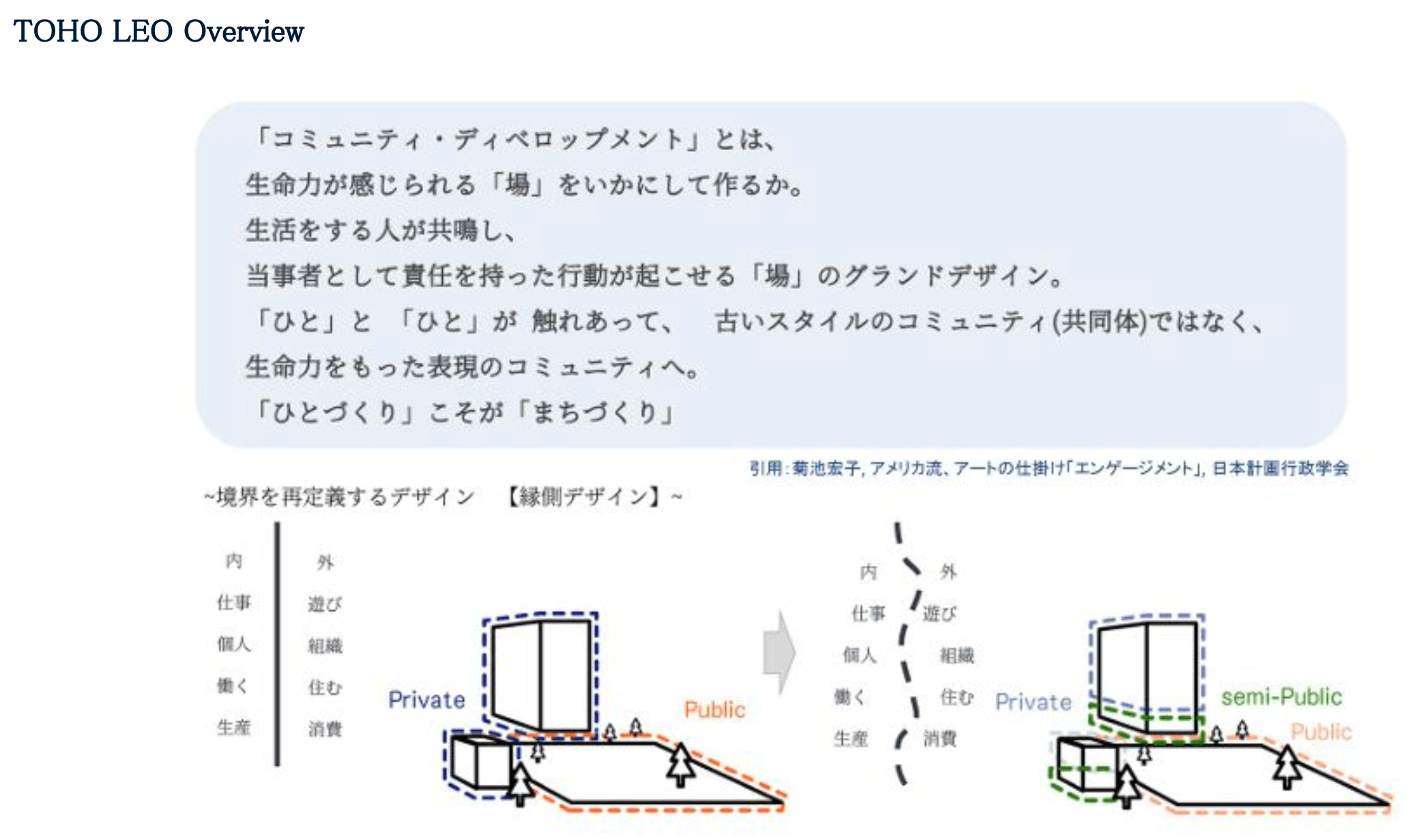梅田至近で古い商店や木造住宅、新しいタワマンが混在する中津は、商業と住まいが溶け合う“混ざり合う街”です。まさに働く場所と暮らす場所、遊ぶ場所と学ぶ場所が混ざり合っている状態。鈴木さんはこの状態を、役割による区分が曖昧になる現代都市において、“セミパブリックな空間”の価値が高まっているのではないかと考えました。