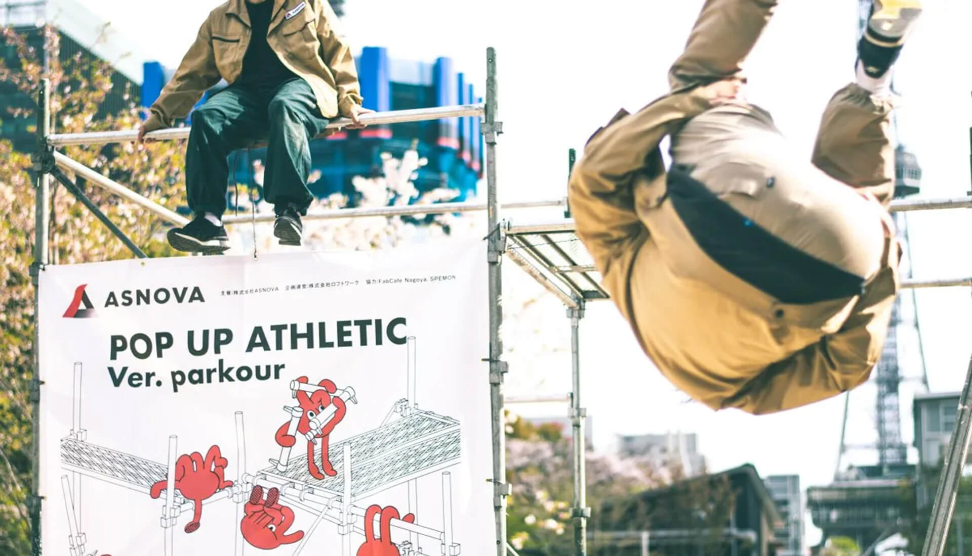 2021年には「POPUP ATHLETIC Ver.parkour」を実施。建設足場を使った巨大アスレチックを建設し、世界で活躍するパルクールチーム「SPEMON」によるパフォーマンスと体験会を開催。10代〜20代の若者層やファミリー層を中心に約350名が来場し、これまでリーチできなかった層に向けて、足場の魅力を伝えました。