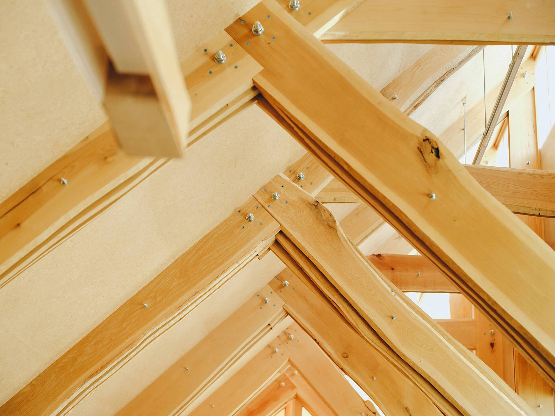 「広葉樹って針葉樹と比べて真っ直ぐな木が少なかったり、加工が難しいので、主要な建築材として使われてこなかったんです。でも僕らは用途の多様性を拡げるために、広葉樹であっても建材として使える可能性を示したかった。そこで、家具用に使われる薄くスライスした広葉樹の板材を複数組み合わせることで、板材を構造材で使える強度にまで高めることに挑戦しました」