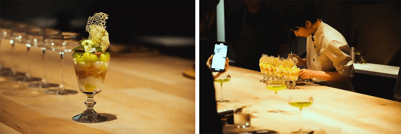 KZ 元々、FabCafe Osakaの企画で「L’In parfait(アンパフェ)」という、音楽をパフェとドリンクで味わうイベントがあって、初めて拓未さんとパティシエの畑谷実咲さんとご一緒したんです。そこで、「音楽を食に変換する」という体験をした時に、「何やこれは、こんなことができるんだ!」っていう衝撃を受けて。
