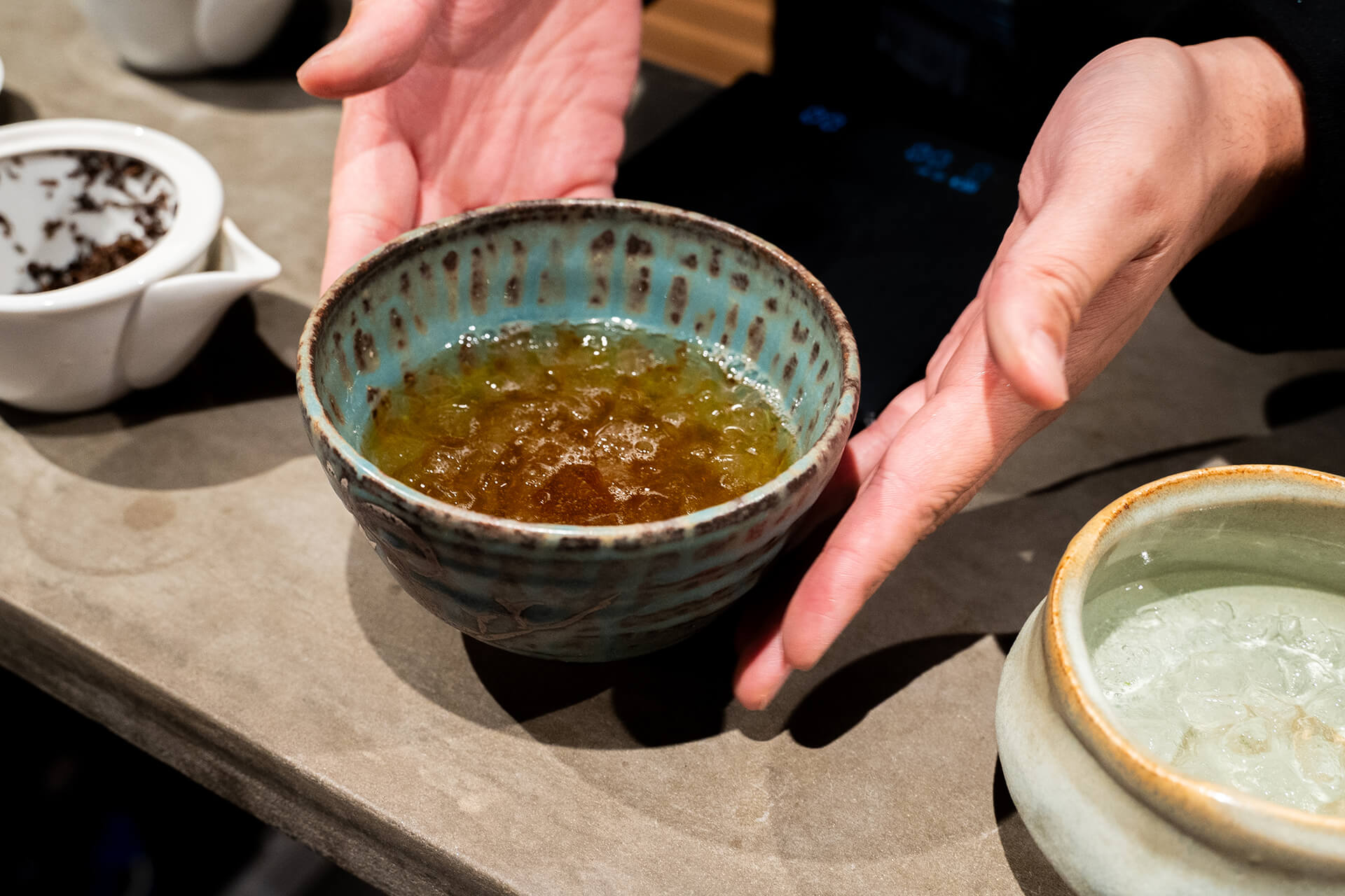 コーヒー/バリスタ出身の背景を持つSABIのメンバーの一人は、茶葉の温度・抽出時間・淹れ方などをロジカルに解析しながら、既存のお茶文化を再解釈しています。