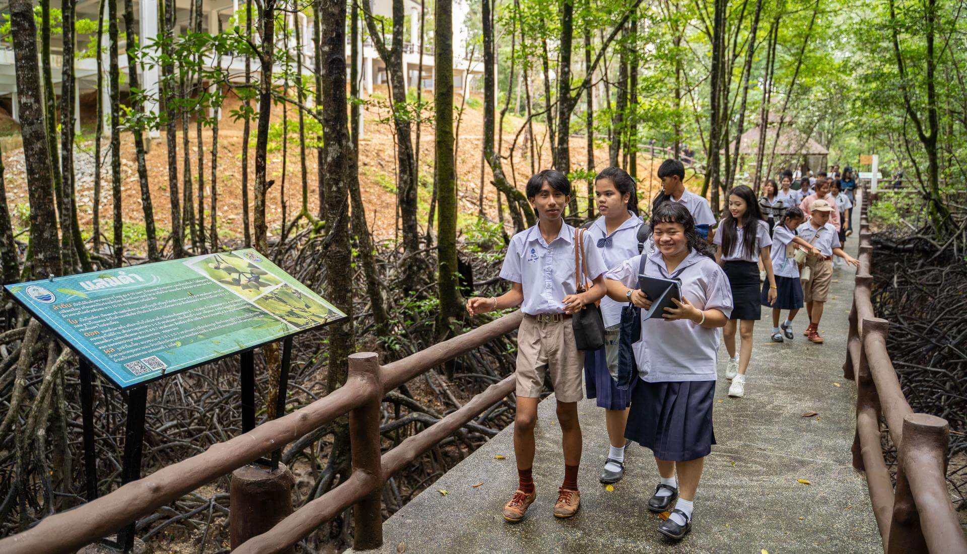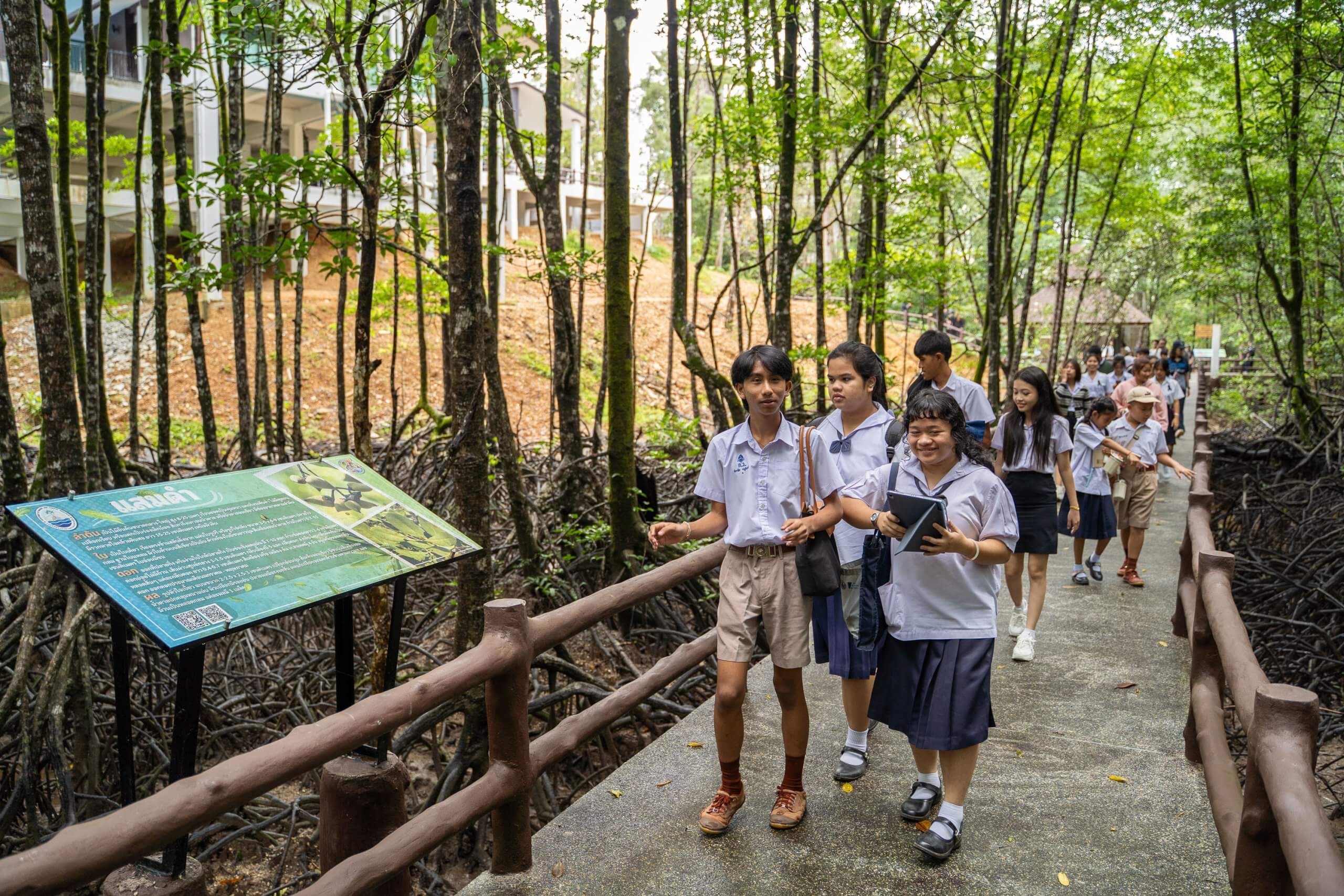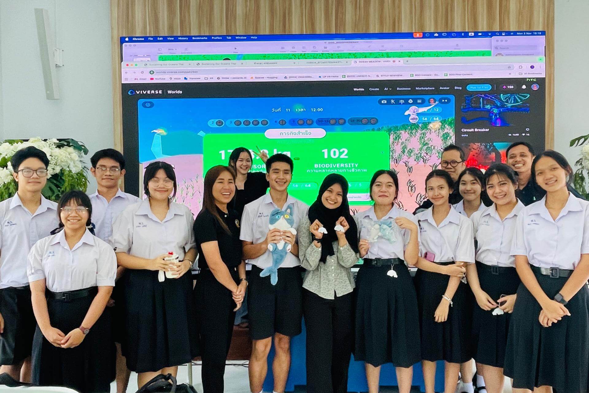 Ocean Meadowは開発の最終段階として、2025年11月3日にタイ南部のラノーン生物圏保存地域で、11月9日にFabCafe Bangkokで一般向けのテストを実施しました。学生たちはベータ版を体験し、クイズに参加しながら海の生態系への理解を深めました。ラノーン生物圏保存地域では、体験後に保護区をめぐるツアーも行われ、ゲーム内の学びを現地の生態系の理解へとつなげる機会が設けられました。