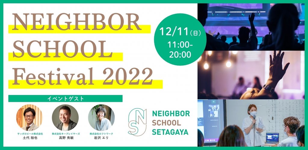 2022年12月11日(日)に「NEIGHBOR SCHOOL Festival 2022」(主催:ネイバースクールSETAGAYA)が開催。「スタートアップコース」ピッチトークにて、ロフトワークの岩沢エリが、ゲスト審査員として登壇します。
