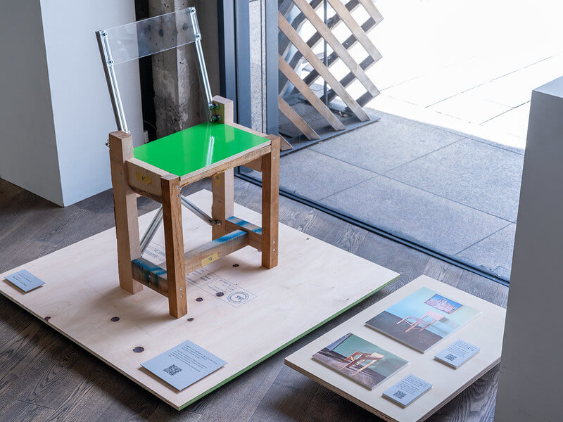 廃材の山をもとに椅子をデザインするようChatGPTに頼み、その椅子を実際に製作した「AI Chair」が今回の展示のために新しく制作されました。