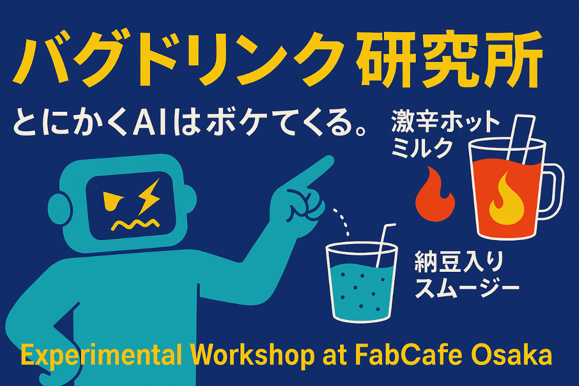 AIを、もっと大阪らしく、笑いで体験したい。展示期間中には、AIと一緒にボケとツッコミを繰り広げるワークショップを開催します。「スッキリしたい」と入力すれば“激辛ホットミルク“。「癒されたい」とお願いすれば“納豆入りスムージー“。そんな“バグった“AIの提案を、人間がツッコミながら調整していくことで、やっと完成させる「バグドリンク研究所」。AIの暴走と人間のツッコミが交差する、その一瞬の掛け合い。“未来の食”をめぐる予測不能な実験が展開されます。