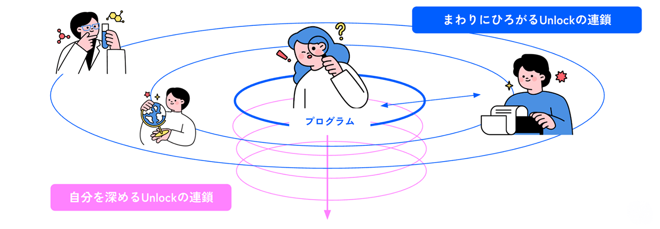 プログラムは、継続的に探求を深めるスクール型の「Unlock PROGRAM」と、単発で参加できるイベント型の「Unlock DAY」という2つの活動で構成されています。