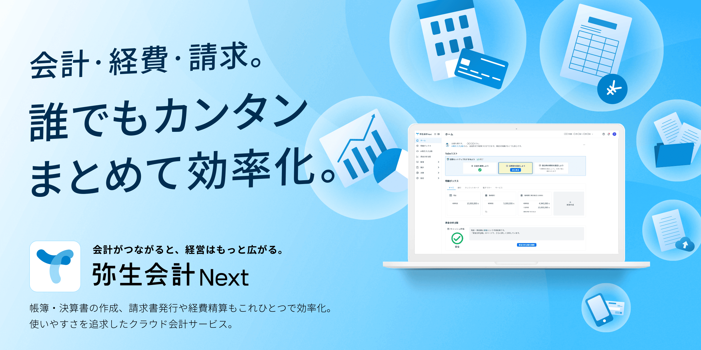 「弥生会計Next」は、「会計・経費・請求。誰でもカンタン、まとめて効率化」をキャッチコピーに、業務の効率化を実現する各機能を実装する、法人向けクラウド会計サービスです。