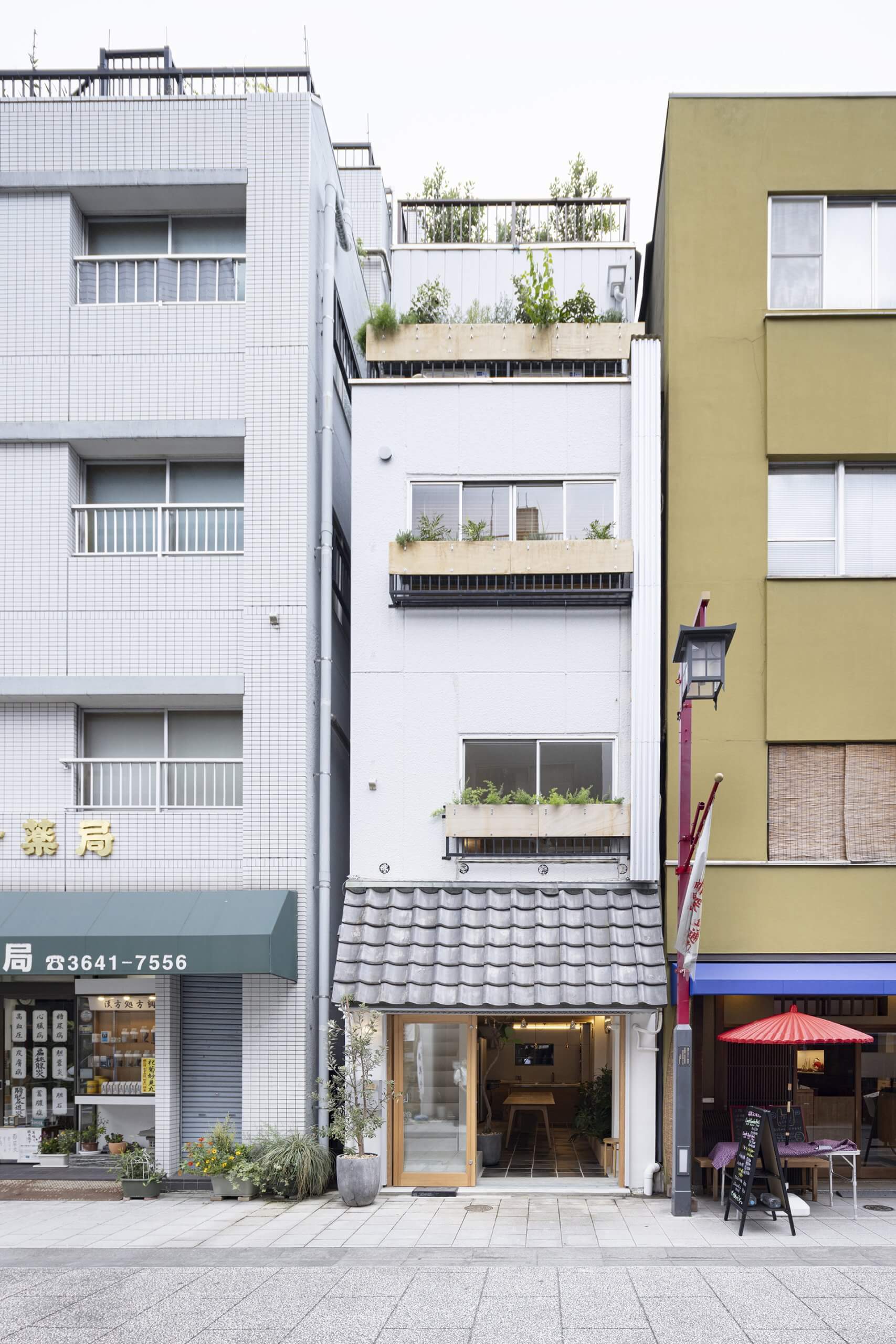 「ながれる」は4つのフロアとルーフフロアからなる一棟のビルです。1階と2階は誰にでも開かれたスペースで、1階の「ゆるめる」と名付けられたフロアは、吹き抜けのある開放的なエントランスになっています。物販スペースには、「自分で自分を心地よくする」をテーマに、国分寺のゆずりは工房でつくられたジャムや、セレクトされたナチュラルワインが並び、訪れる人が手に取り味わいながら思い思いの時間を過ごせるようになっています。