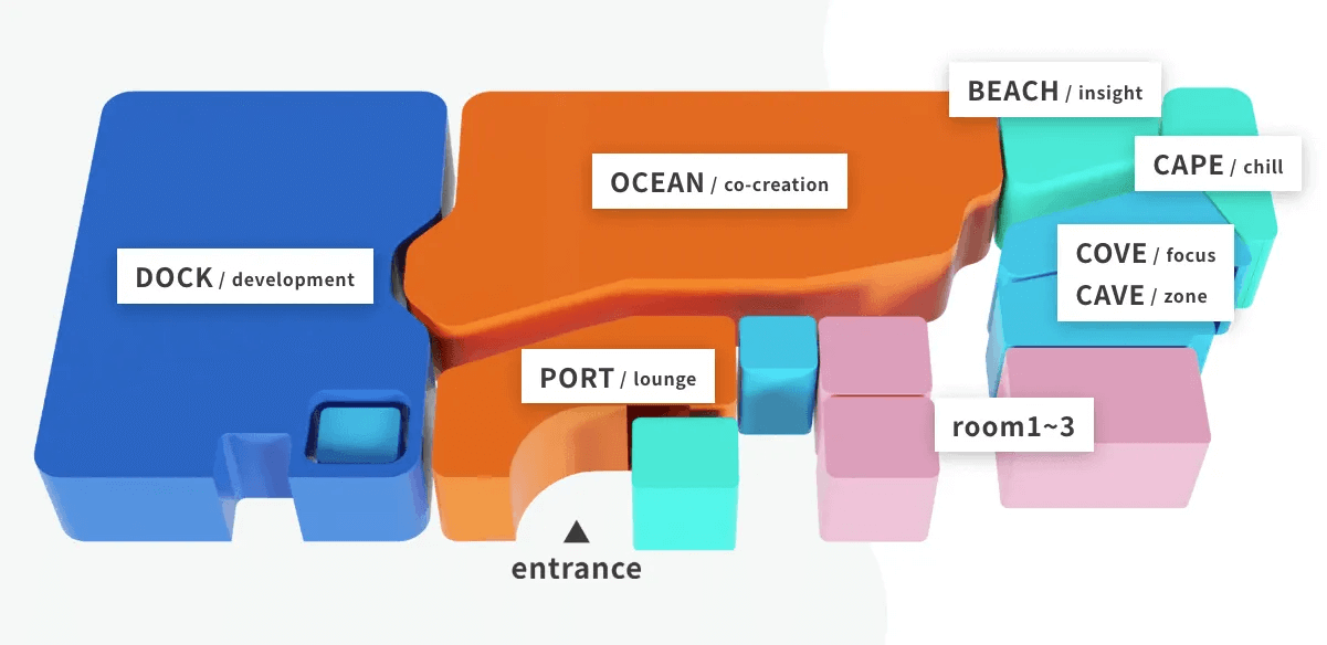 - DOCK / development:專屬軟體開發區,負責推動解決方案事業的執行與實現。(※非員工禁止進入)